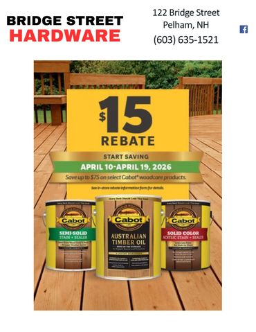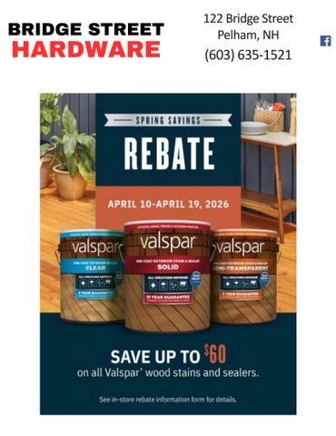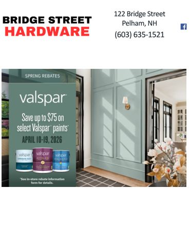 Don't forget to like us on Facebook and Sign up for our Bridge Street Hardware Blog Pelham NH.