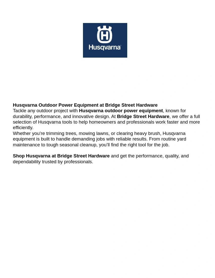Shop Husqvarna outdoor power equipment at Bridge Street Hardware. Find reliable chainsaws, trimmers, blowers built for performance.